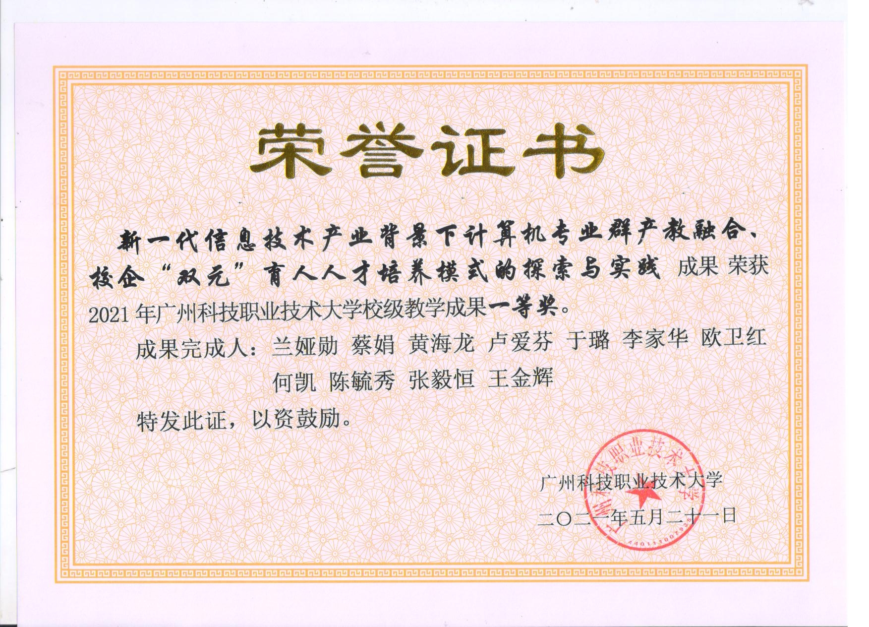 下一篇: 3.2021年度校级教育教学成果奖一等奖