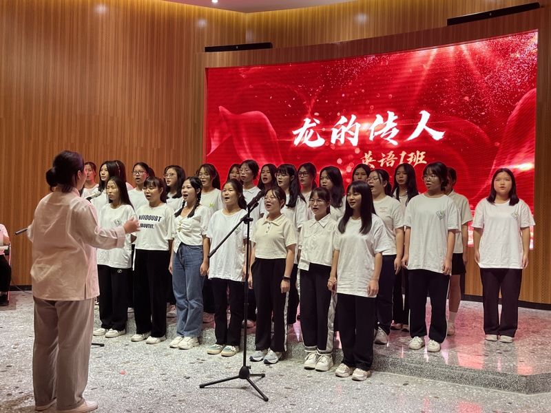 在晚会的下半场,刘滨同学的独唱《开往春天的地铁》展现了中国实现改革开放以来的美好气象,21英语本科2班的合唱《龙的传人》唱出了民族情怀,21英语本科3班的合唱《让我们荡起双桨》展现了岁月静好,何绮琪的独唱《爱笑的眼睛》有着青春神秘。在党史知识竞答游戏环节,现场互动达到新的高潮。晚会在王艳萍老师指挥的21国际经济与贸易本科2班《歌唱祖国》大合唱中胜利闭幕。