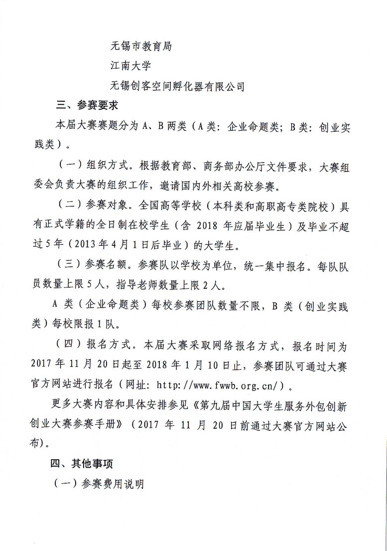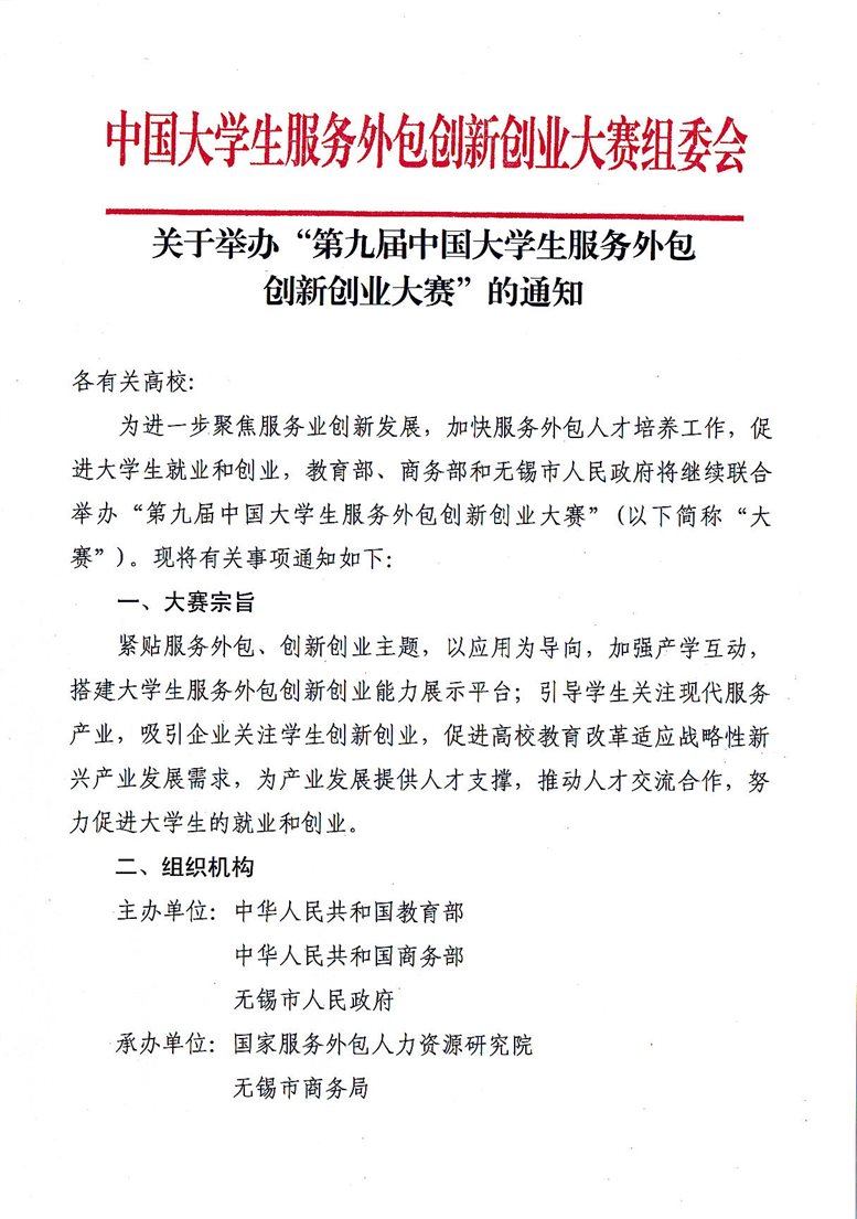 关于“第九届中国大学生服务外包创新创业大赛”通知