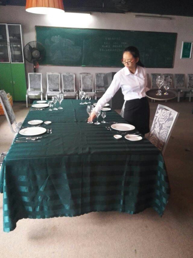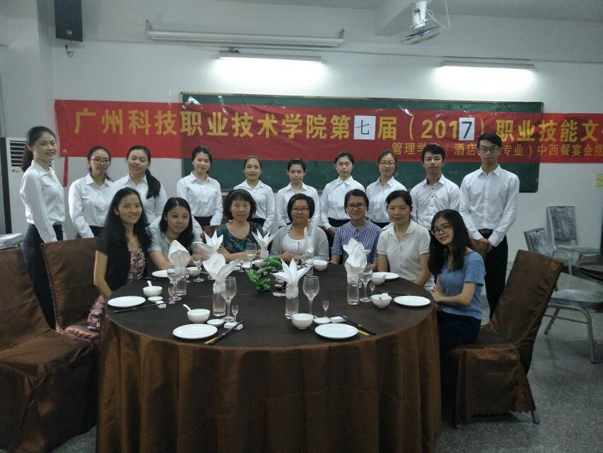 为积极响应学校“竞技能、爱环境、奔前程”为主题的第七届职业技能文化节的要求,加强教师实践教学水平,提高学生酒店服务技能,适应现代酒店行业发展,由我院旅游管理专业承办的一系列酒店管理专业技能竞赛中的为期一周的中西餐主题宴会摆台技能大赛于6月7日圆满结束。