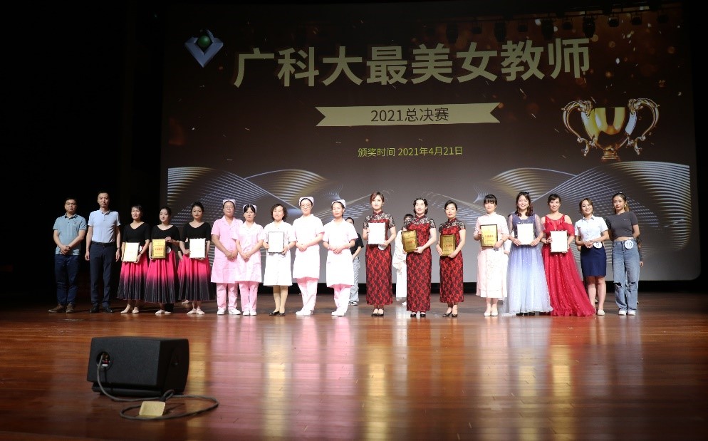 为提升我校女教职工形象气质,营造积极向上、和谐奋进的校园文化氛围,建设“才高、品端、人和、德美”的教师队伍,充分展示党领导下现代女性的精神面貌,广科大“炫彩巾帼”最美女教师才艺大赛于2021年4月21日在广科大剧院隆重举行,经管学院于明霞院长、经管学院党总支刘静书记、参赛女教职工及部分师生代表参加大赛。