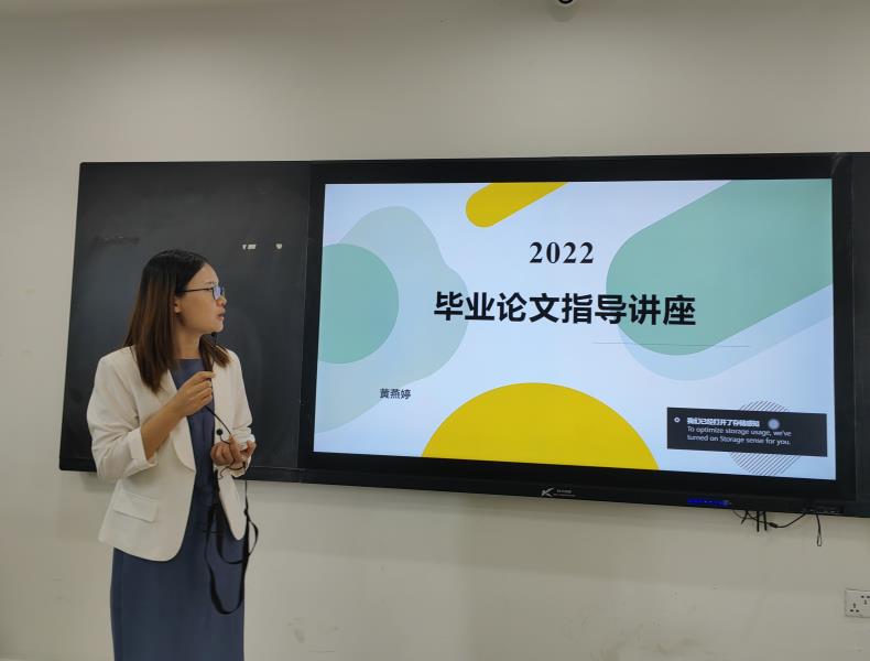 其后,黄燕婷老师针对广科大本科毕业论文的任务和要求为同学们进行了详细介绍。黄燕婷老师分别从纪律要求、论文选题、内容写作和资料获取四个方面展开了详细的介绍,尤其重点介绍了应用论文的写作思路,论文框架结构设计,论文撰写具体要求,论文任务书和开题报告的撰写等内容,十分丰富详实。