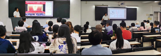 2023年5月17日经济与管理学院党总支“学习贯彻习近平新时代中国特色社会主义思想主题教育”专题讲座二顺利开讲,此次讲座由工商企业管理师生联合党支部党员章冠球同志主讲,经管学院全体师生党员参加。