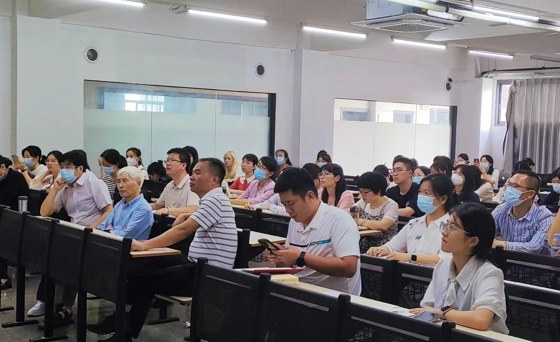 图为章冠球同志热情洋溢的讲座现场
