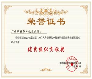 近日,我校林文涛等19名人力资源管理专业学生欣喜的拿到了“人力资源共享服务职业技能等级证书(初级)”证书。此次“1+X”证书试点工作中,我校喜获2021年度“1+X”人力资源共享服务职业技能等级证书制度试点工作“优秀组织贡献奖”。