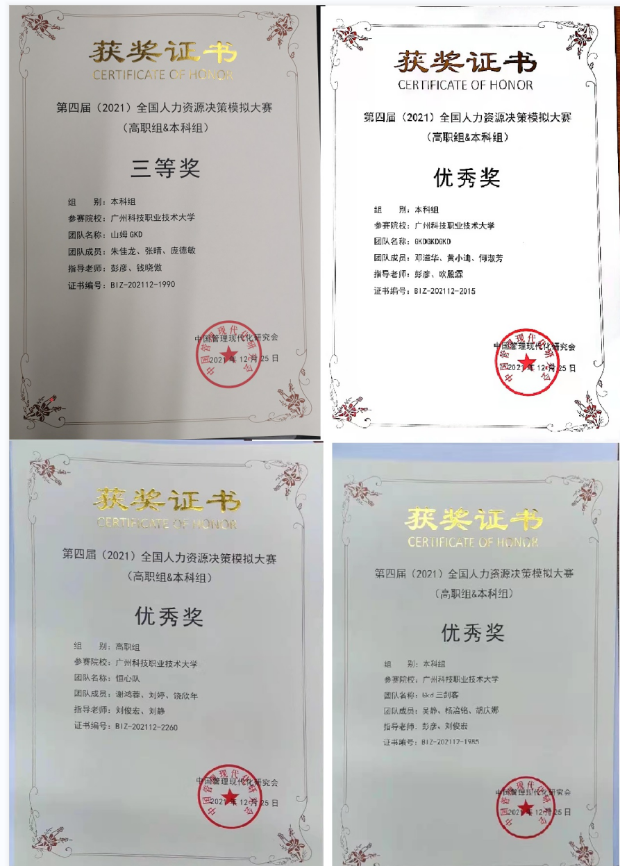 据悉我校共有6位领导及教师参与指导,他们是刘静副院长及刘俊宏、刘慧玲、梁震锋、彭彦、钱晓傲等老师。我院人力资源管理专业协同育人效果初显。