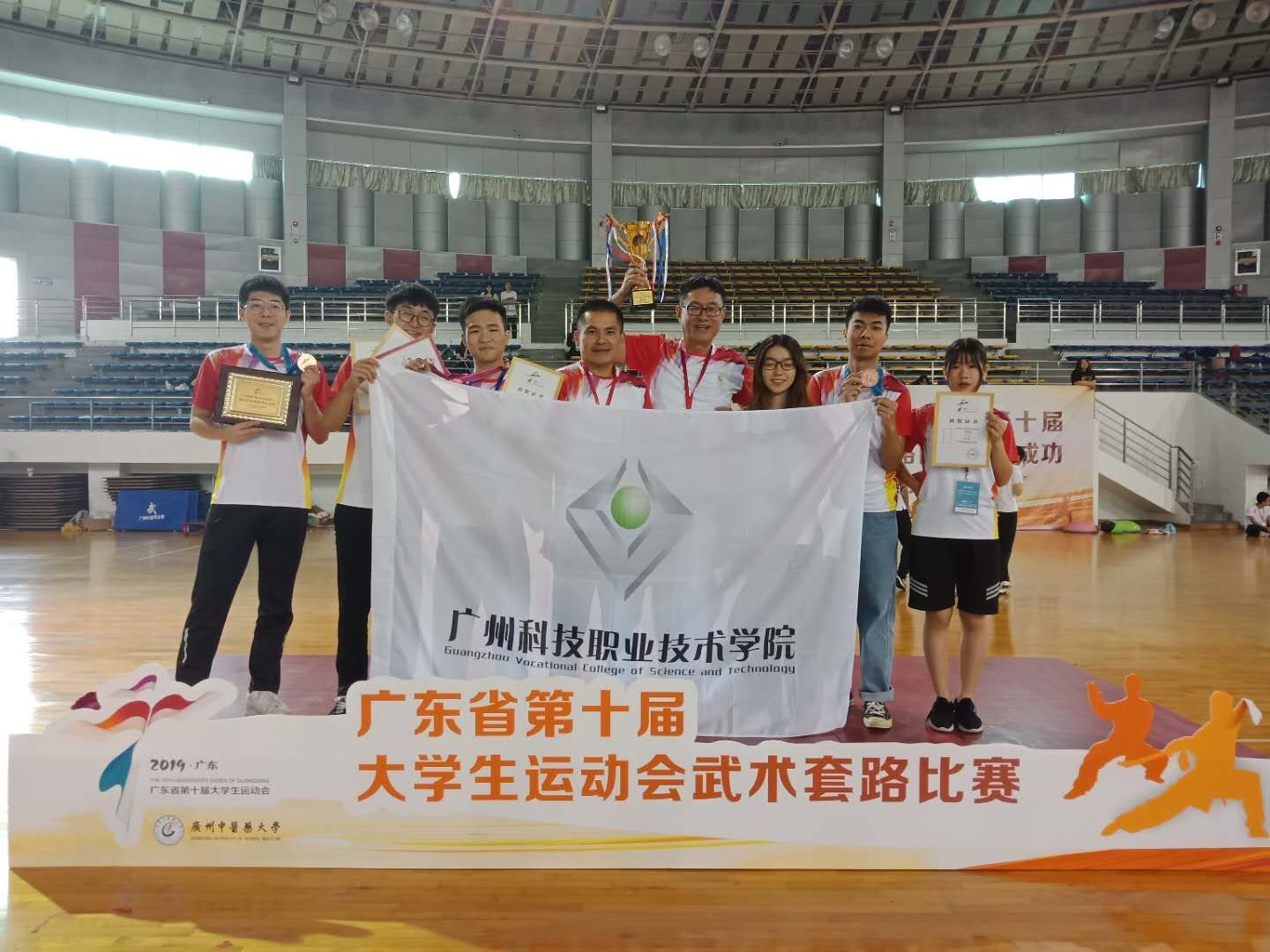 (六)、2019年5月,参加广东省第十届大学生运动会武术套路比赛,获得1个第二名、2个第三名、2个第四名、2个第五名、1个第八,团体总分第七名。