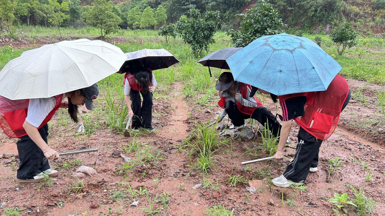 图为:2024级中草药1班同学会在除杂草