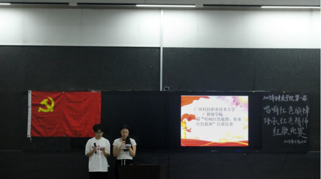 2025 年 5 月 21 日,由健康学院学生党支部主办的第一届 “唱响红色旋律,传承红色精神” 红歌比赛在1栋教学楼1212 阶梯课室圆满收官。活动通过多元艺术形式激发师生爱国情怀,凝聚红色力量。