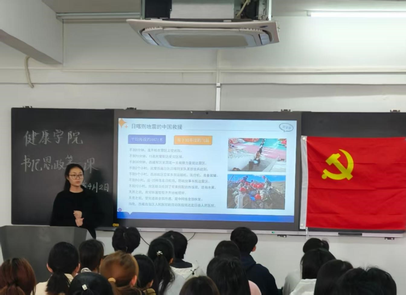 为深入学习贯彻习近平新时代中国特色社会主义思想,落实立德树人根本任务。健康学院于2025年4月2日在2607教室开展书记思政第一课。课堂由健康学院党总支副书记杜威书记主讲,健康学院学生党支部书记王钟婷老师、健康学院全体入党积极分子与部分党务小组成员到会学习。