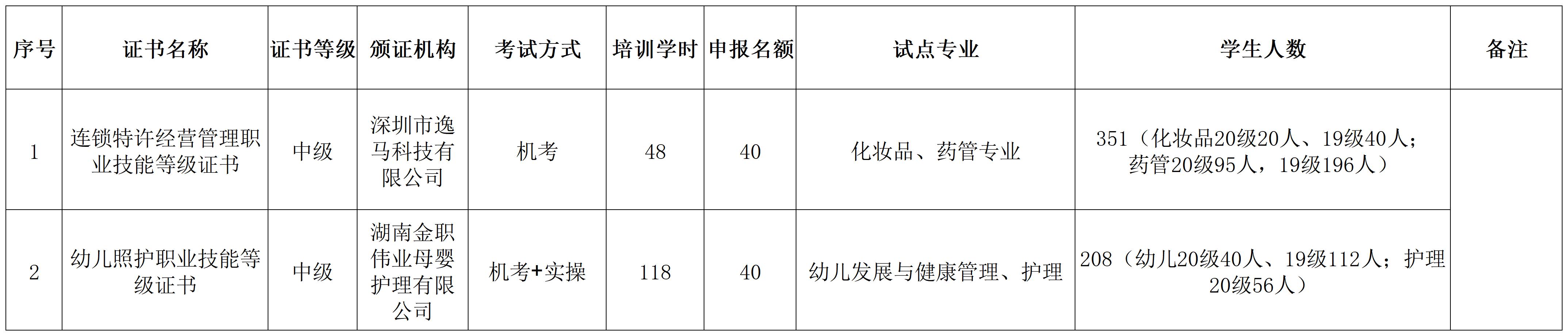健康学院申报1+X职业技能等级证书试点申报汇总表