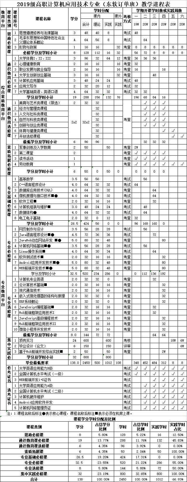 协同育人人才培养方案(部分)