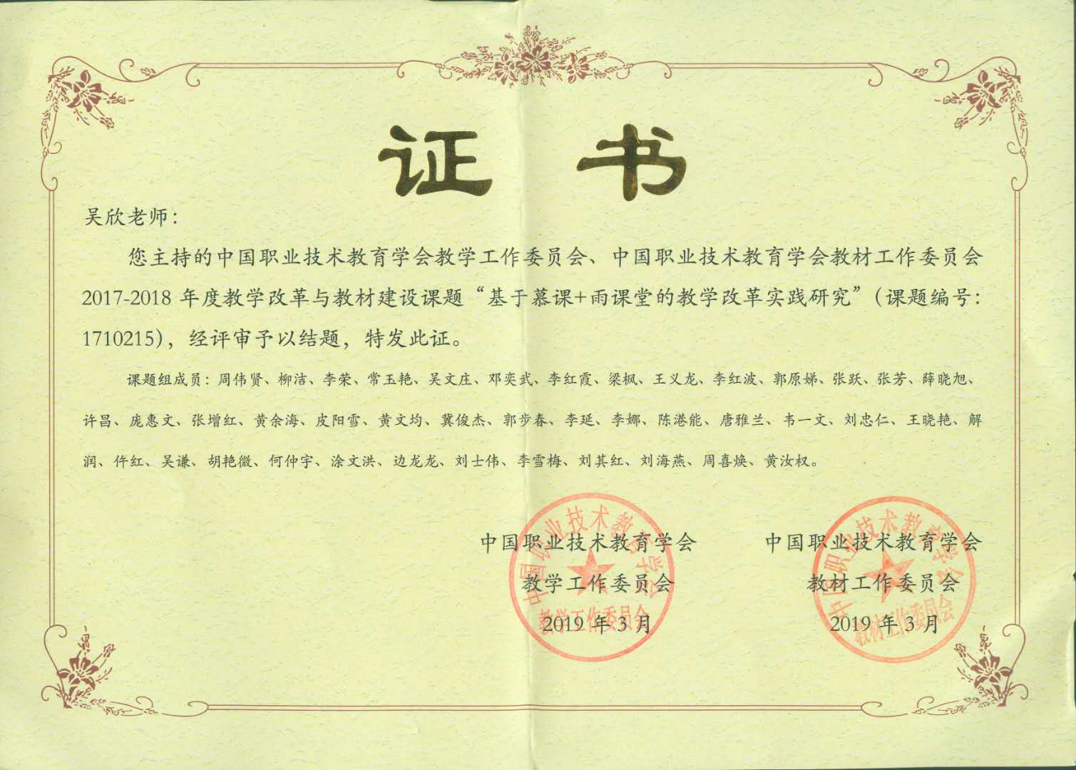 2017-2018年度国家级课题结题证书