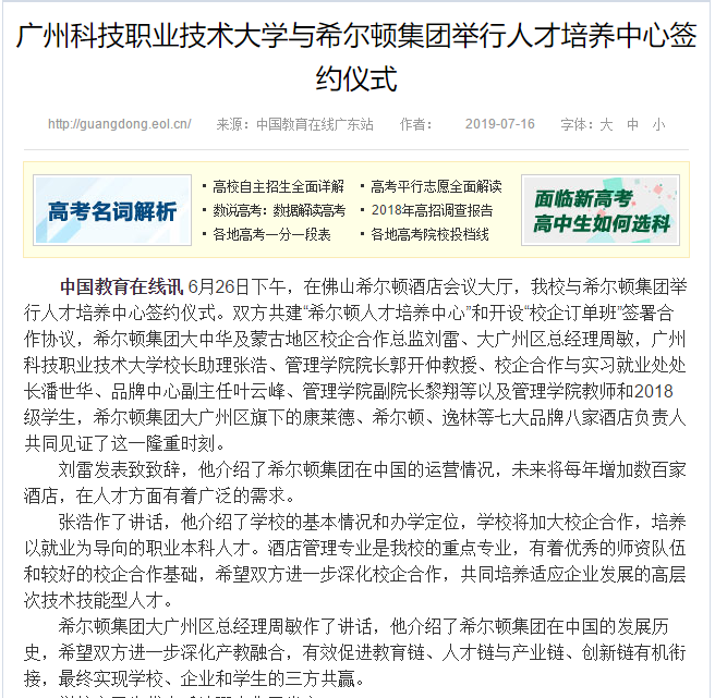 【中国教育在线广东站】mk官方网站_MK(中国)一站式服务官网与希尔顿集团举行人才培养中心签约仪式