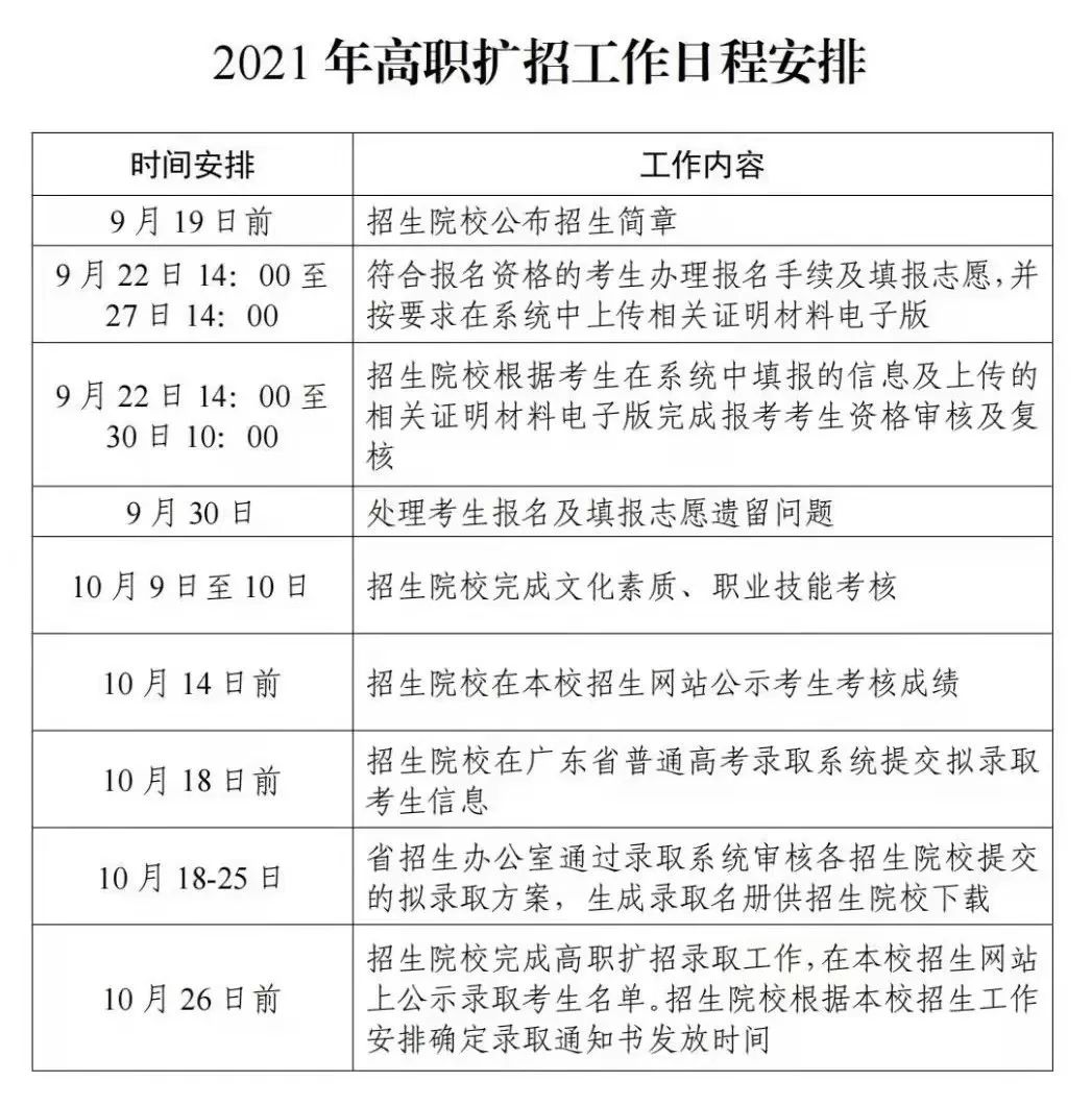 八、2021年高职扩招工作日程安排