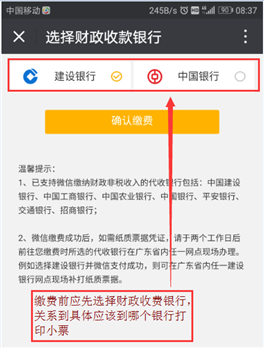• 选择好财政缴费银行后,点击确认缴费,进入支付页面