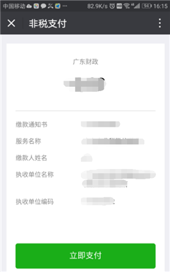 • 手机扫描二维码,出现缴费信息,再缴费前应当再次确认,如下: