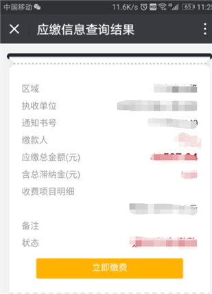 手机扫描二维码,出现缴费信息,再缴费前应当再次确认,如下: