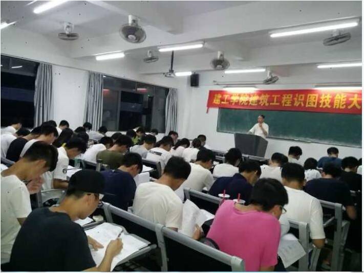 2017年6月14日晚上19点,建工学院在二教二楼2212教室举行了建筑识图技能竞赛。本届比赛共有来自15级和16级建筑工程技术专业和工程造价专业的58名同学参赛。郭启康、曾宪珪、胡先国、李佰承、王道锋等老师担任评委。