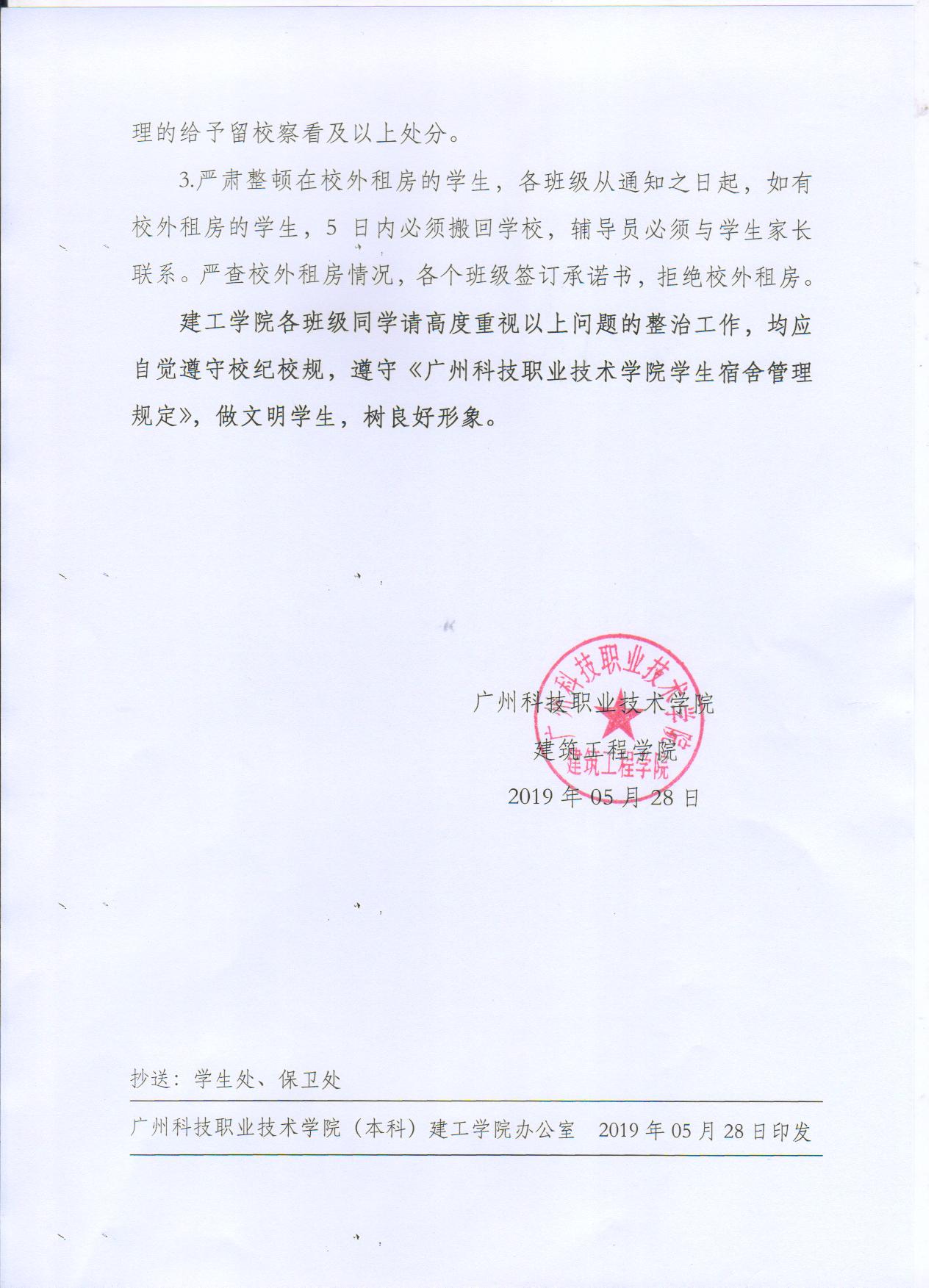 建筑工程学院关于整治学生晚归、校外租房的通知