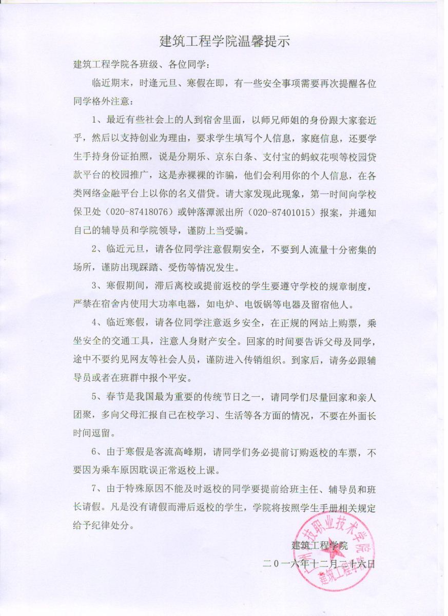 建筑工程学院温馨提示