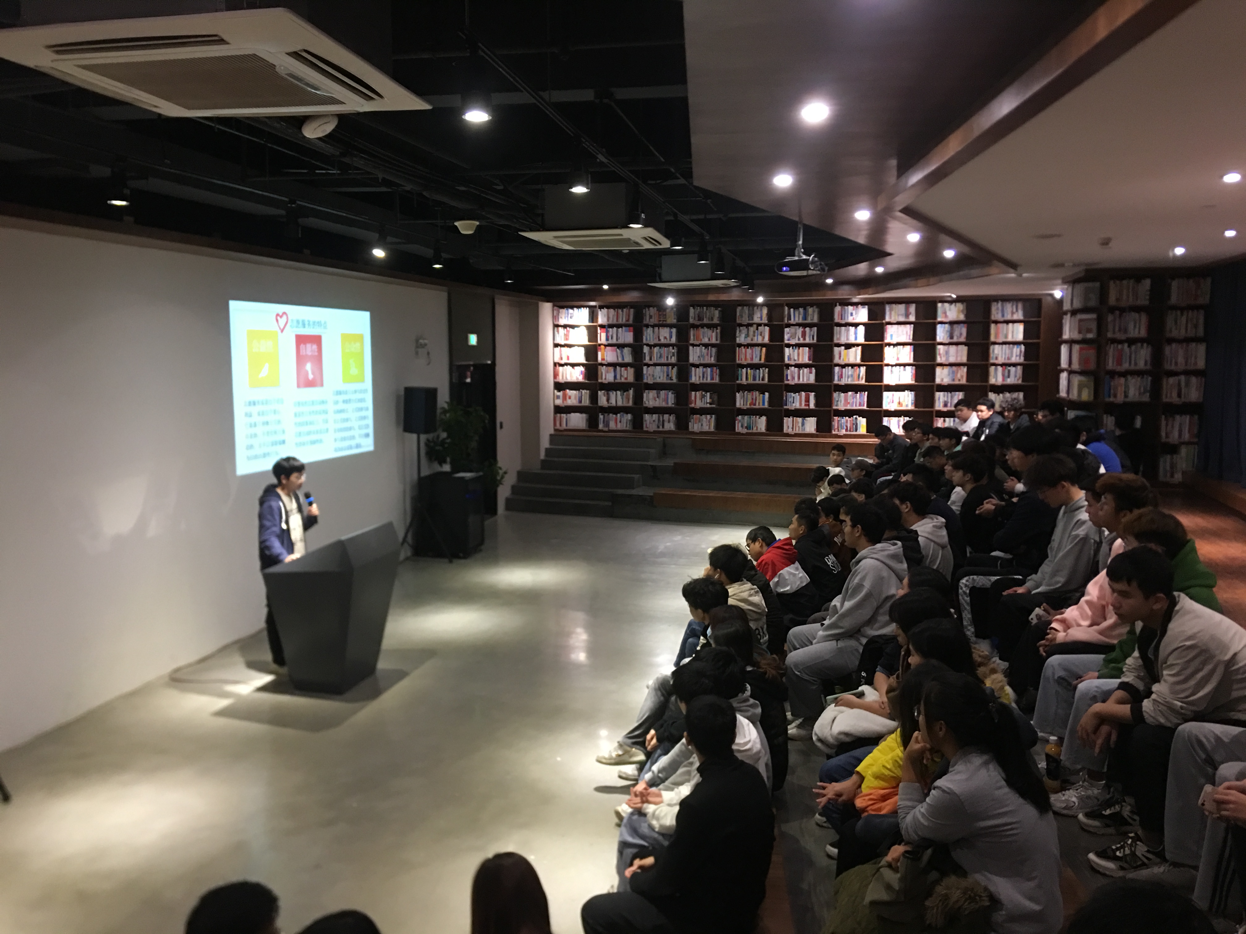 在讲坛上,杨俊同学结合自身参与志愿服务的经历与同学们进行交流分享。首先,讲述了中国青年志愿者事业是我们党领导的共青团在新的历史条件下创新工作领域、服务社会需求的一大创举。高校志愿服务在中国青年志愿者事业中一直发挥着重要的先导性、示范性、创新性和基础性作用。接着,再结合自身在校青年志愿者当中的经历阐明了志愿者是一群为改进社会而提供服务、贡献个人时间及精神,基于道义、信念、良知、同情心和责任感而从事公益事业的人群,强调了志愿服务的公益性、自愿性、公众性三个特点。通过讲述志愿服务的四个关键以及注册志愿者证的方式方法,让在座的各位同学们对志愿者的认识更加的深入。最后,与在场的同学进行趣味互动,使同学们对志愿服务有了更深刻的认识。