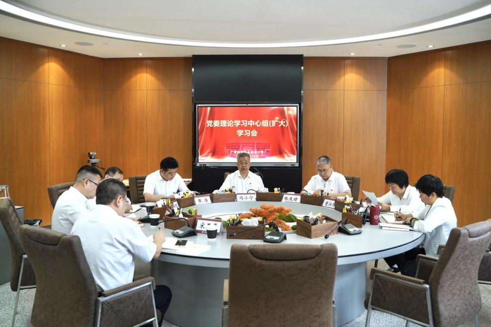 (广科大新闻网讯)4月16日上午,我校举行党委理论学习中心组(扩大)学习会暨深入贯彻中央八项规定精神学习教育读书班。学校党委书记冯小宁主持会议并讲话,学校党委理论学习中心组成员、党委各职能部门负责人、二级学院党总支书记和直属党支部书记参加集体学习。会议现场会议传达学习了习近平总书记在贵州、云南考察时的重要讲话精神,深刻领会习近平总书记关于开展深入贯彻中央八项规定精神学习教育的重要讲话和重要指示,就学校全面推进学习教育工作进行再动员、再部署与再强调。读书班上,冯小宁领学《习近平关于加强党的作风建设论述摘编》,重点学习“中央八项规定是改进作风的切入口和动员令,是长期有效的铁规矩、硬杠杠”。会议要求学校各级党组织要锲而不舍落...