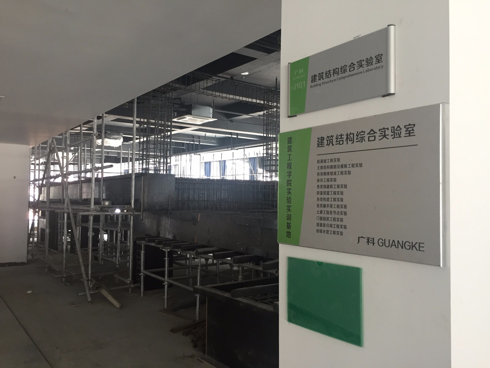 2017年9月,建筑工程实训(验)基地正式迁入新落成的建工大楼。大楼总面积15444.4 m2,共11层。首期使用1-7层,共有实训(验)室22个,共10943.6 m2,教学设备总值723.82万元。可满足以“土木工程”及相关专业本、专科的实践教学。