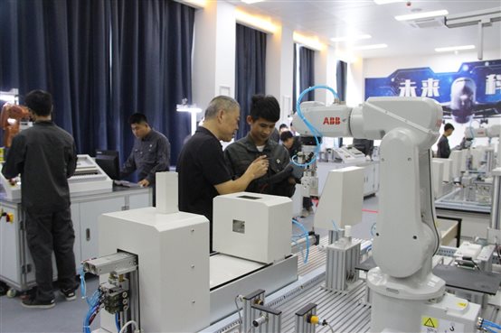 教学材料齐全、机床和智能机器人管理规范、环境整洁。