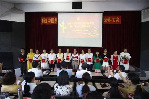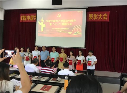 2019年7月1日,为庆祝中国共产党成立98周年,展示宣传我校基层党组织的新气象和师生党员的新风貌,学校党委举办了“七一”表彰先进基层党组织、优秀共产党员和优秀党务工作者的大会。