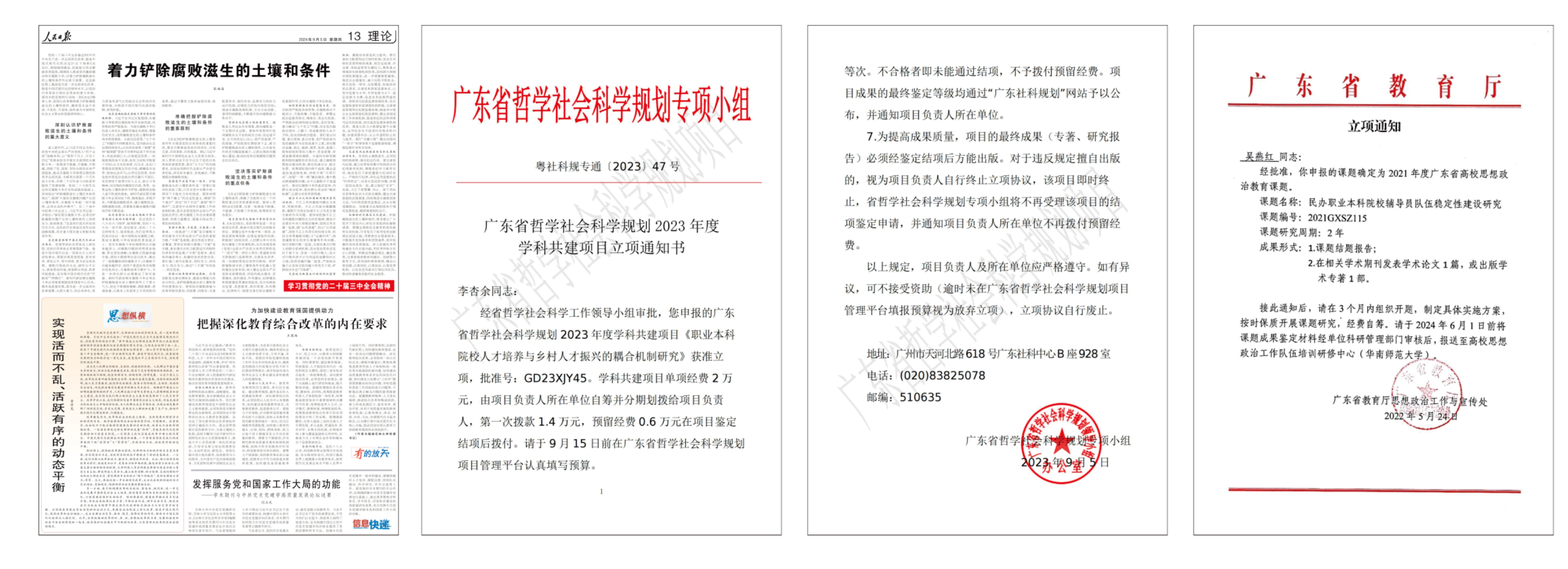 近5年来,学院教师共参与国家社科基金、国家自然科学基金项目2项,主持教育部、团中央和省社科基金以及教育厅项目等各项科研课题62项,参与4项,主持学校项目31项,企业横向项目8项,编写教材5部,出版学术专著2部,在各级各类期刊杂志上发表学术文章100余篇。