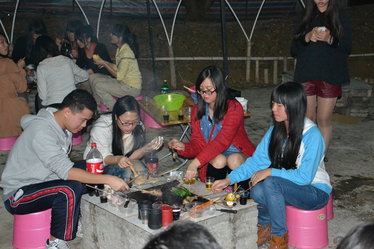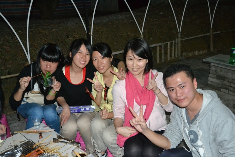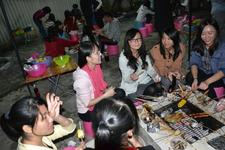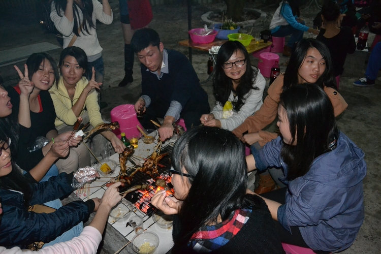 (瞧,同学们很认真的在烧烤啊)