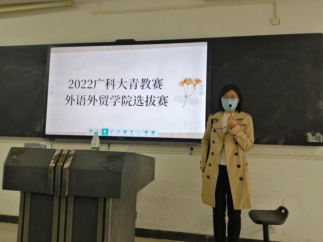 为了迎接第六届广科大青年教师教学竞赛,本院于3月30日下午在1209课室开展了外语外贸学院选拔赛。本次比赛吸引了学院多名青年教师报名,但由于赛制规定“已经参加过校青教赛并取得名次的老师不再参赛”,最终有三名教师参加了本次角逐。比赛由外院杜艳红副院长、廖丽玲副院长以及督导组张茂林教授、邱晓玉老师、胡俊茹老师担任评委。