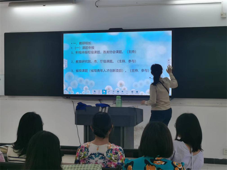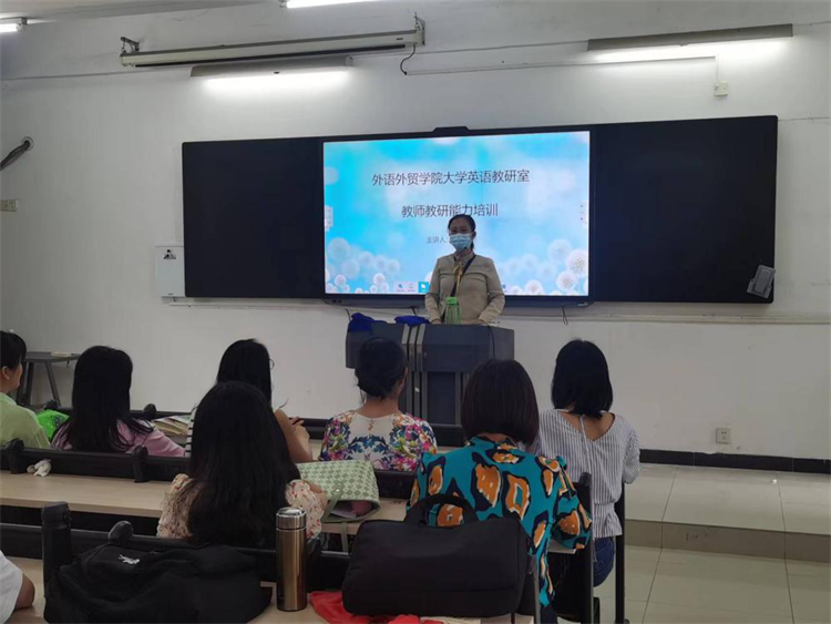 2022年5月5日下午2点,外语外贸学院举办“青年教师教研能力提升”培训。此次培训由大学英语本科教研室主任周云倩老师担任主讲,教研室全体青年教师参加了活动。