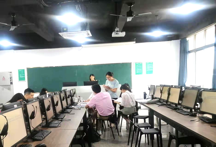 2022年5月28日-5月29日,外语外贸学院于教学楼5栋与6栋部分教室举办2022届商务英语专业毕业论文第一次答辩会。本次会议邀请了澳门大学英语语言学博士、硕士生导师、暨南大学外国语学院英语系主任朱红强副教授,中山大学语言学博士、广东金融学院陈树坤副教授,广东外语外贸大学博士、中山大学南方学院黄新辉副教授,华中科技大学博士、广东技术师范学院蒋友梅副教授,仲恺农业工程学院外国语学院郑定明副教授,广东轻工职业技术学院应用外语学院黄友嫦副教授等校外专家担任答辩会嘉宾,我学院李磊院长、杜艳红副院长、廖丽玲副院长、专业主任张茂林老师、全体论文指导教师及大部分应届毕业生参加了此次线下毕业论文答辩会。