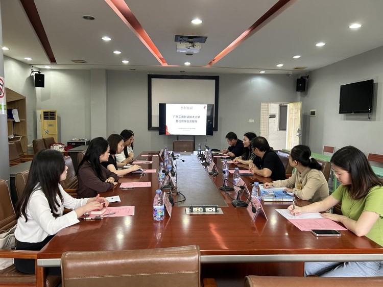 广东工商职业技术大学孙雅晶主任介绍了学校公共英语学情、课程设置、大学英语四六级通过率及公共英语教学改革实践及经验。我校周云倩主任分享了大学英语教学改革的方向、课程设置、学分及如何将大学英语四六级内容融入教材及课堂教学等经验。双方就“ESP”教学法、教材的选择与使用、教学中出现的问题及解决方法进行了深入探讨。学院副院长杜艳红就双师型教师队伍建设、分层教学等与嘉宾进行了交流。