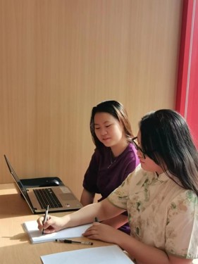 课堂上,吴婷老师倾听了实习生谢洁樱汇报当前的实习情况和挑战,并对她在工作中遇到的困难和疑问逐一进行解答和讲解。然后,吴老师就商务礼仪和职场注意事项与实习生展开了探讨,指导实习生如何将书本知识与工作实际相结合,做到知行合一。