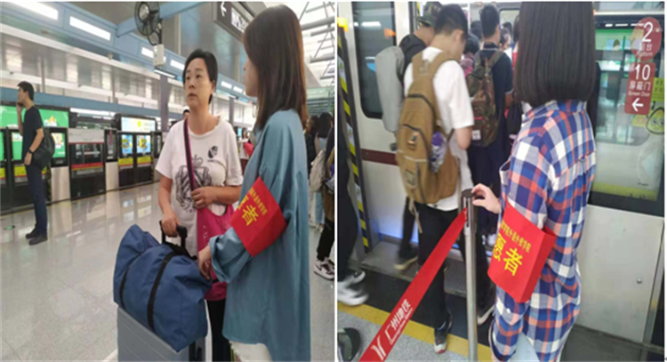 (图为我院学生党员、积极分子在新和地铁站引导、服务人流)