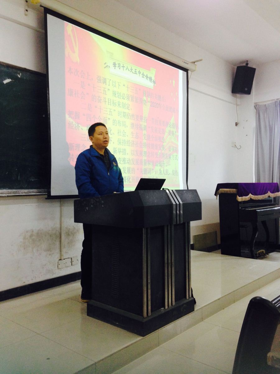 12月4日上午,外语系支部在1203教室举行了党的十八届五中全会精神学习活动。45名师生党员、入党积极分子参加了学习活动。通过集中学习的方式,原原本本、原潮原味学习了党的十八届五中全会报告全文。