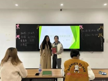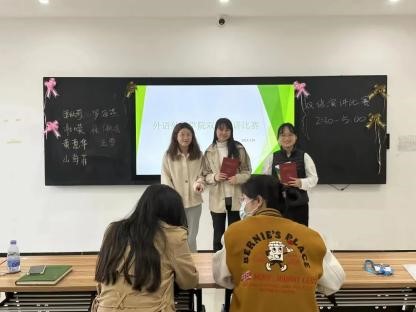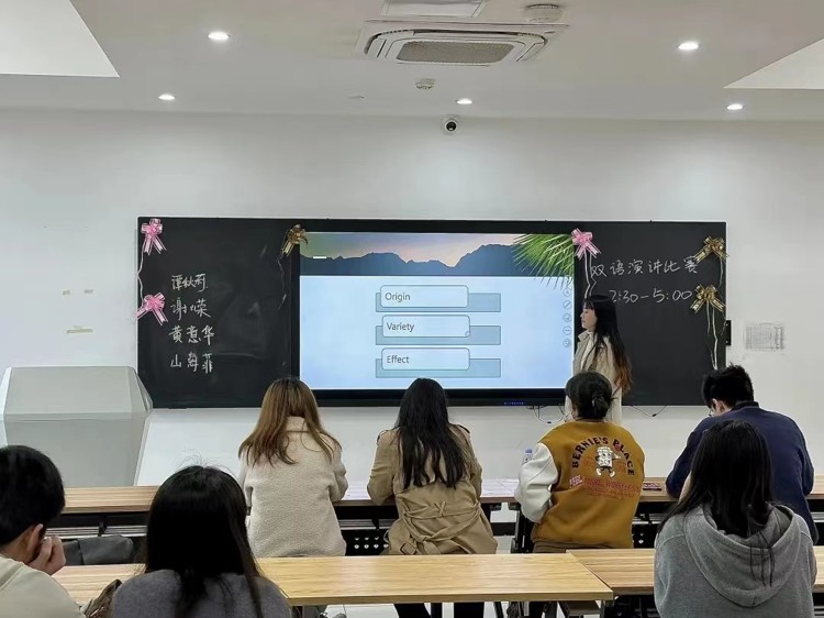 2023年3月29日下午,由外语外贸学院学生会主办的外语外贸学院双语演讲比赛在8702教室圆满结束,黄安琪老师、曾彦霏老师、朱艺琳老师担任本次比赛的评委。比赛共分为两部分,第一部分是围绕固定题目:Chinese Tea Culture(中国的茶文化)进行演讲,第二部分是随机题目即兴演讲,报名选手依次登台亮相展现演讲风采。优美的声音,激昂的语调,流畅的幻灯片,把现场气氛一次又一次地推向高潮,在场的观众和评委共享着这一视听盛宴。