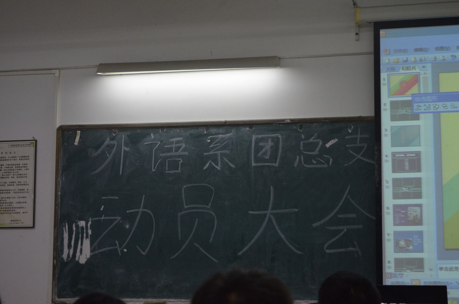 10月27日晚,外语系团总支动员大会在公共教学楼1203举行。出席此次动员大会的包括书记邱健,副书记马学佳以及团总支骨干成员和各部部员。虽然秋风瑟瑟,但丝毫吹不散部员们的热情。