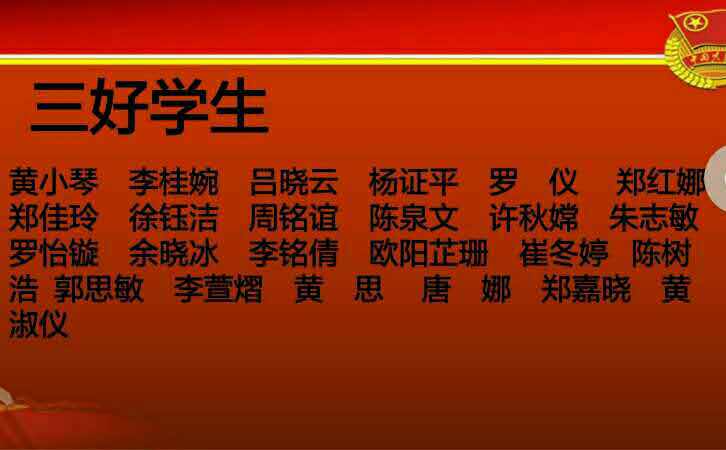 荣获优秀三好学生:热心为集体服务、学习态度端正、积极参加文体活动。