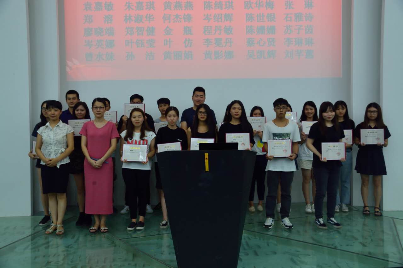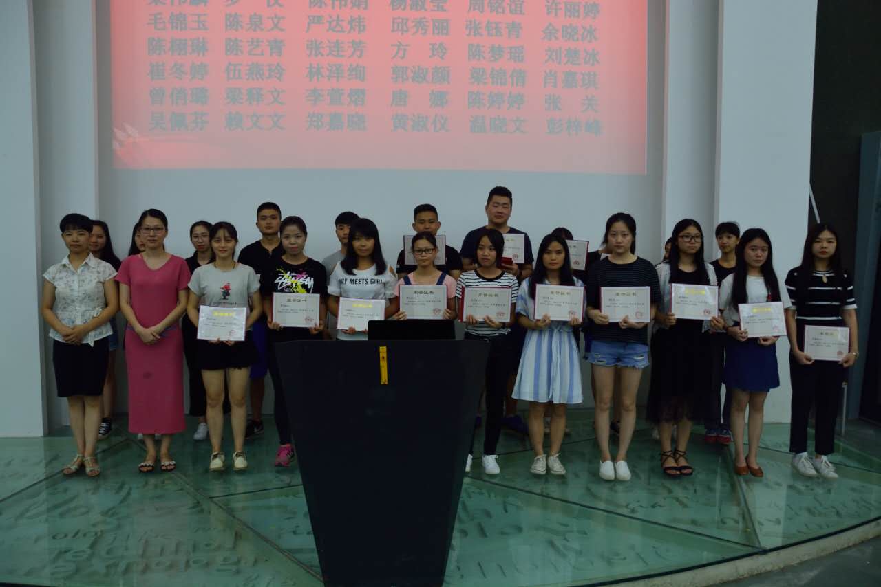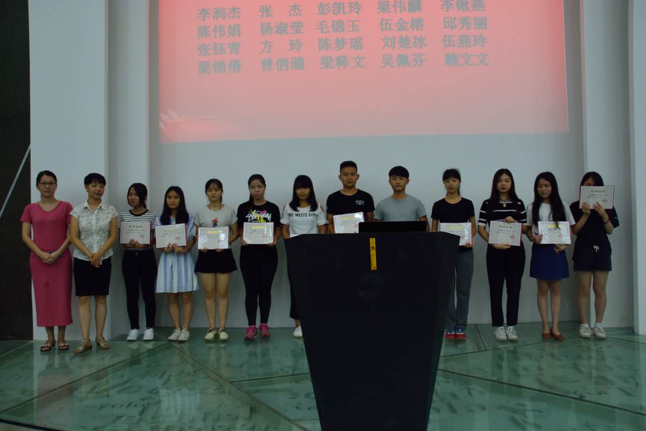 颁奖典礼进行时,由谢兆婷同学宣读获奖名单,各位优秀获奖同学陆续上台领奖。由领导们为优秀学生颁奖。