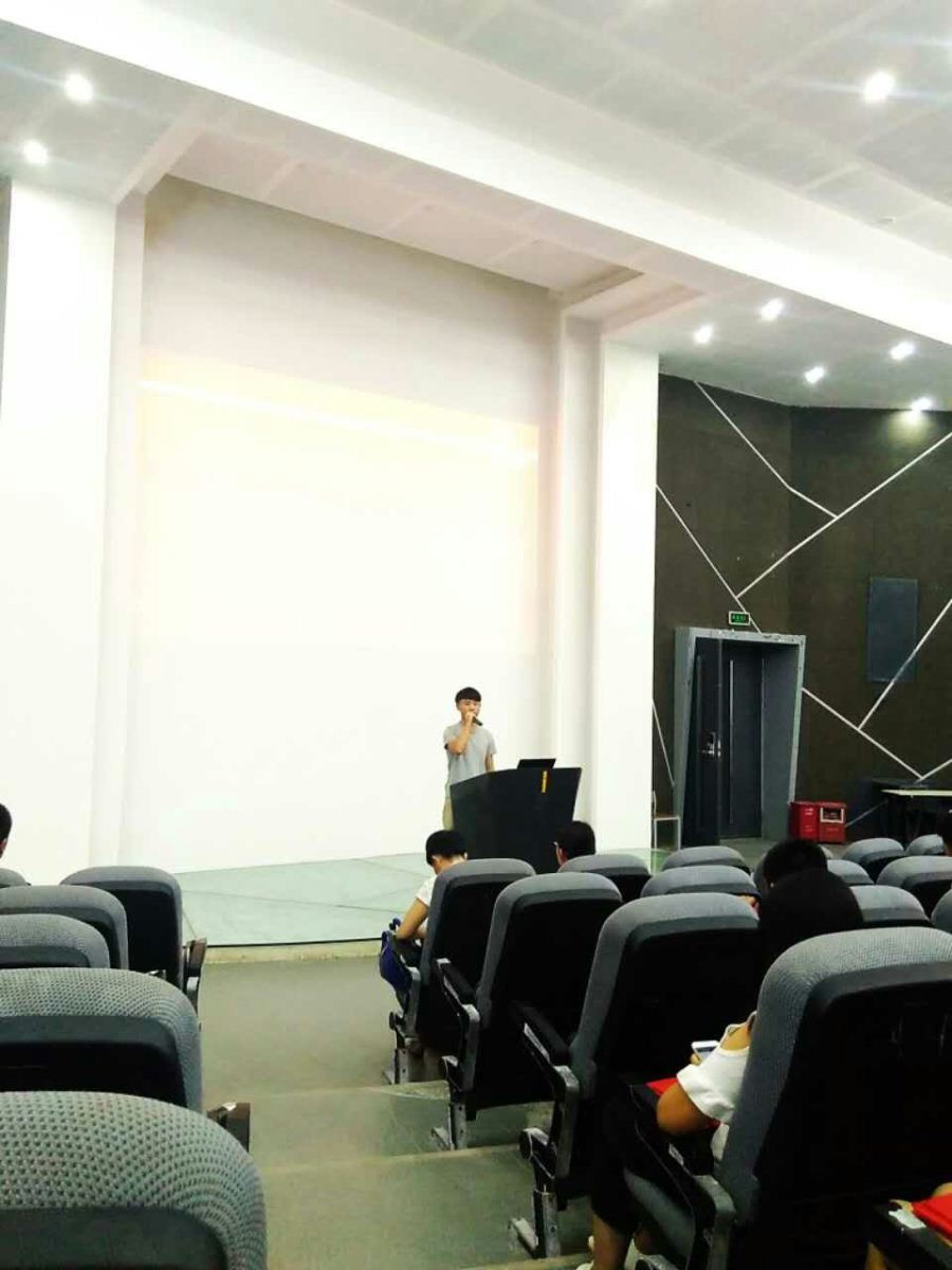 优秀学生代表梁释文上台发言,他提到在校要工作学习两不误,学好英语是生存技能,也是生存本领。现场,他激励我们要学习规划自己的大学生活,有矢志不渝的精神。要勇敢地打破常规,另辟蹊径,并且要常怀感恩之心。同时他也凭着娴熟的口语,从八大系中脱颖而出,获得校推荐出国到德国学习的机会。