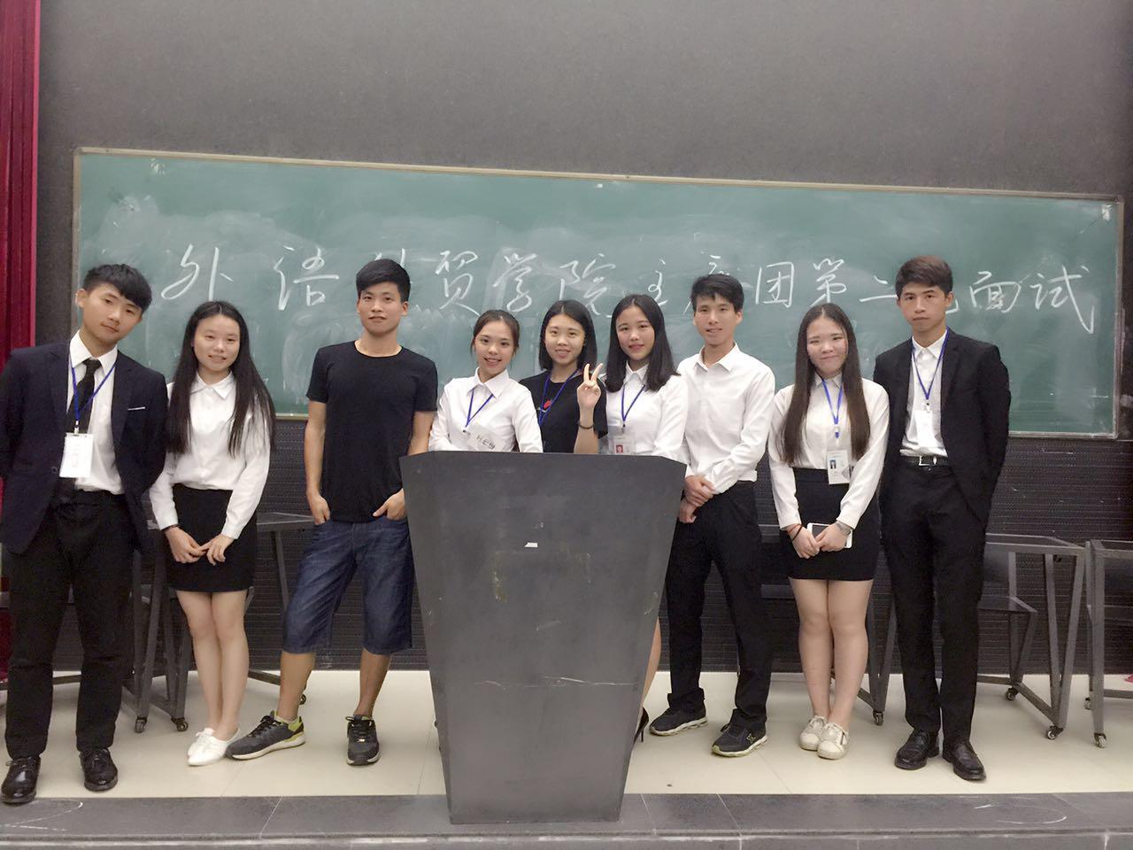 附上一张外语外贸学院学生会竞选人与主席和各部长的合照。