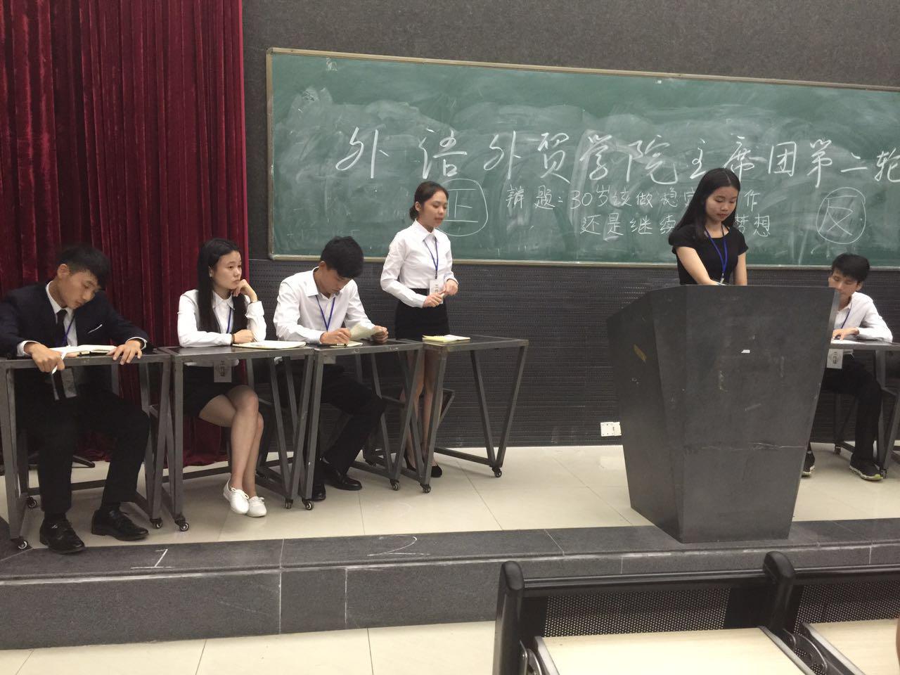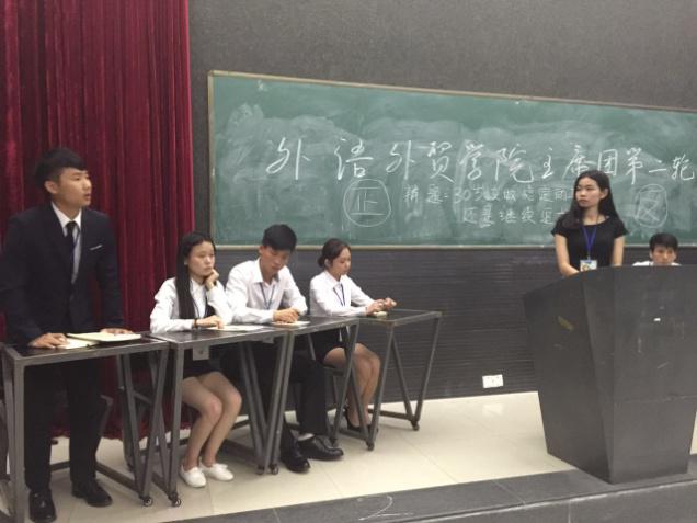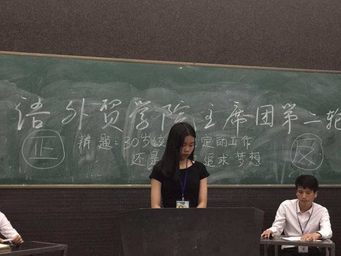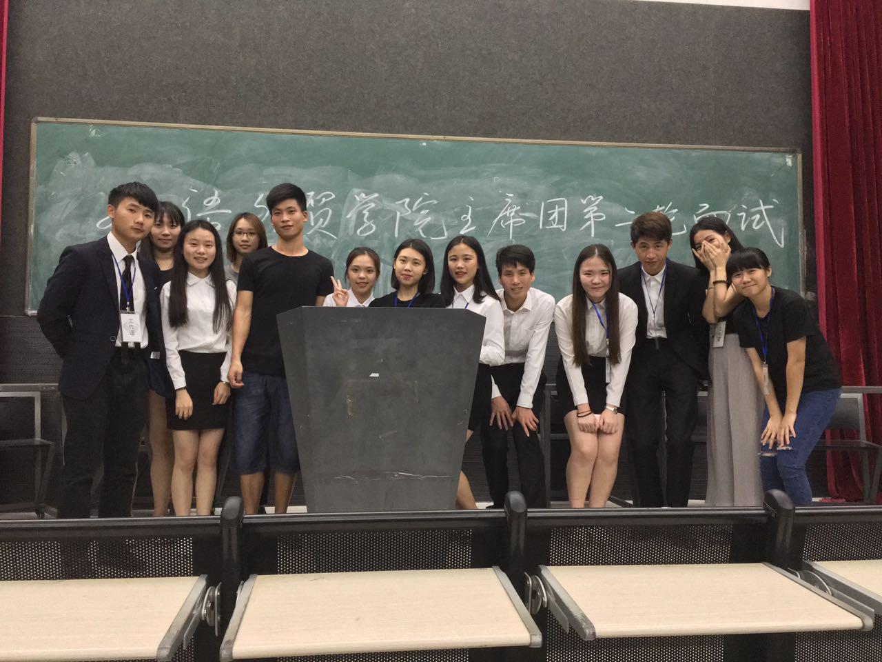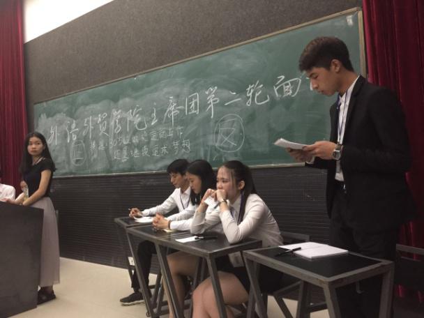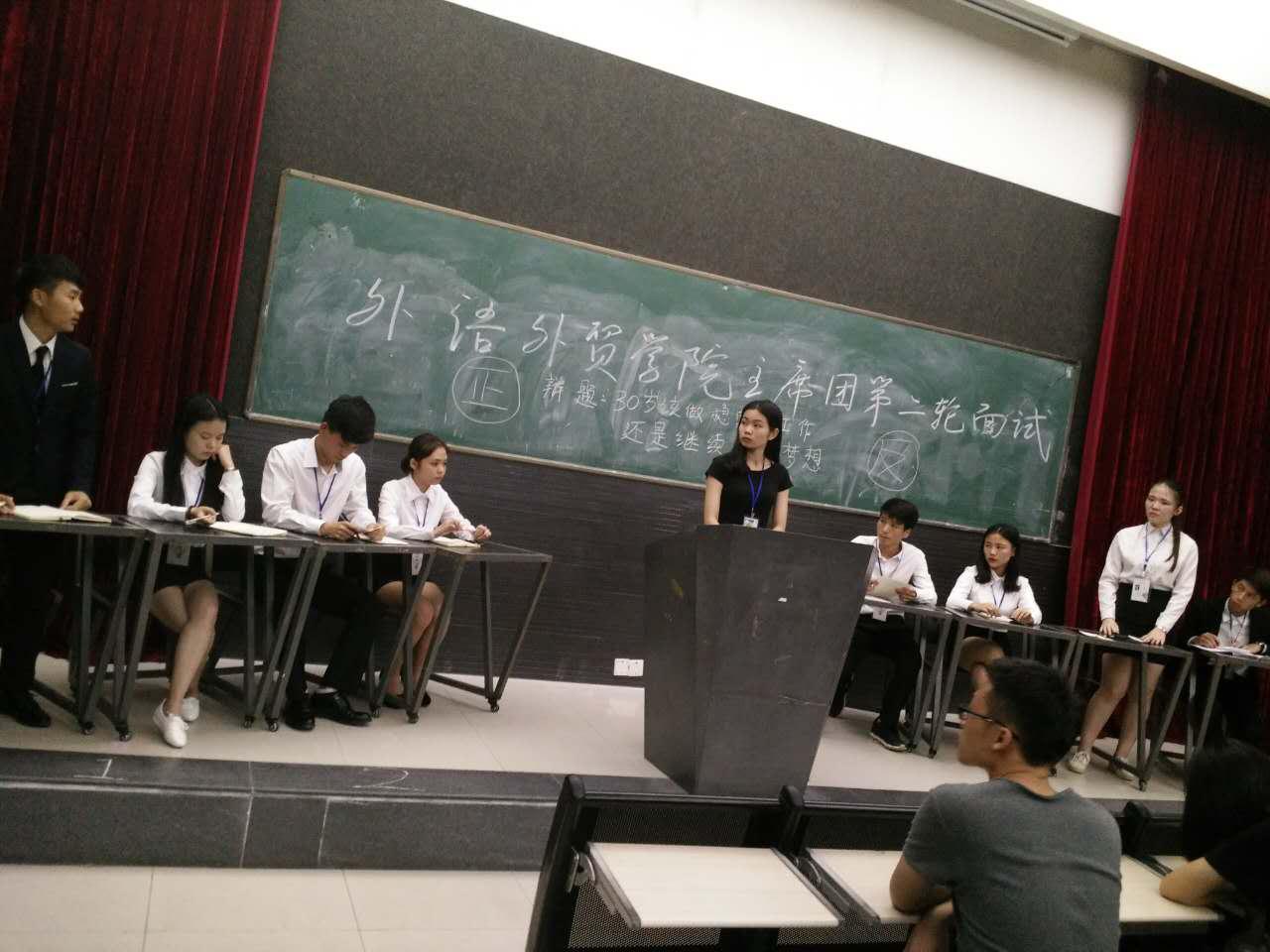 2016年5月5号晚7点外语外贸学院在阶梯一举行了学生会主席团竞选第二轮面试。竞选当晚邀请外语外贸学院团总支书记符婷婷老师,院学生会主席陈晓军,副主席梁伟麟当此次面试评委。