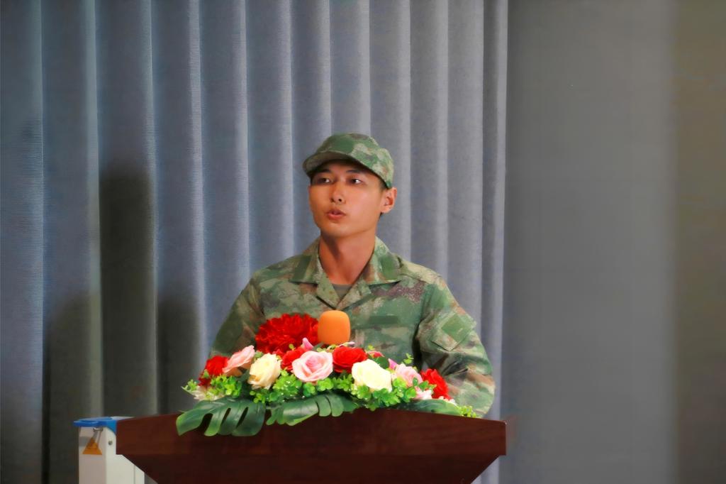 新兵代表郑健东同学在发言中表示:“感谢一路支持我们的学校、悉心培育我们的老师、默默牵挂我们的亲友与同学。自己将不忘校园给予的教诲,把母校的学风、老师的嘱托装进背囊,在军营讲好“学生兵”的故事,也把部队的作风带回生活,做校园与军营之间的纽带。将会以战士的姿态践行誓言,让“学生”身份成为军旅中别样的底色,让“军人”身份成为人生里永恒的勋章。”