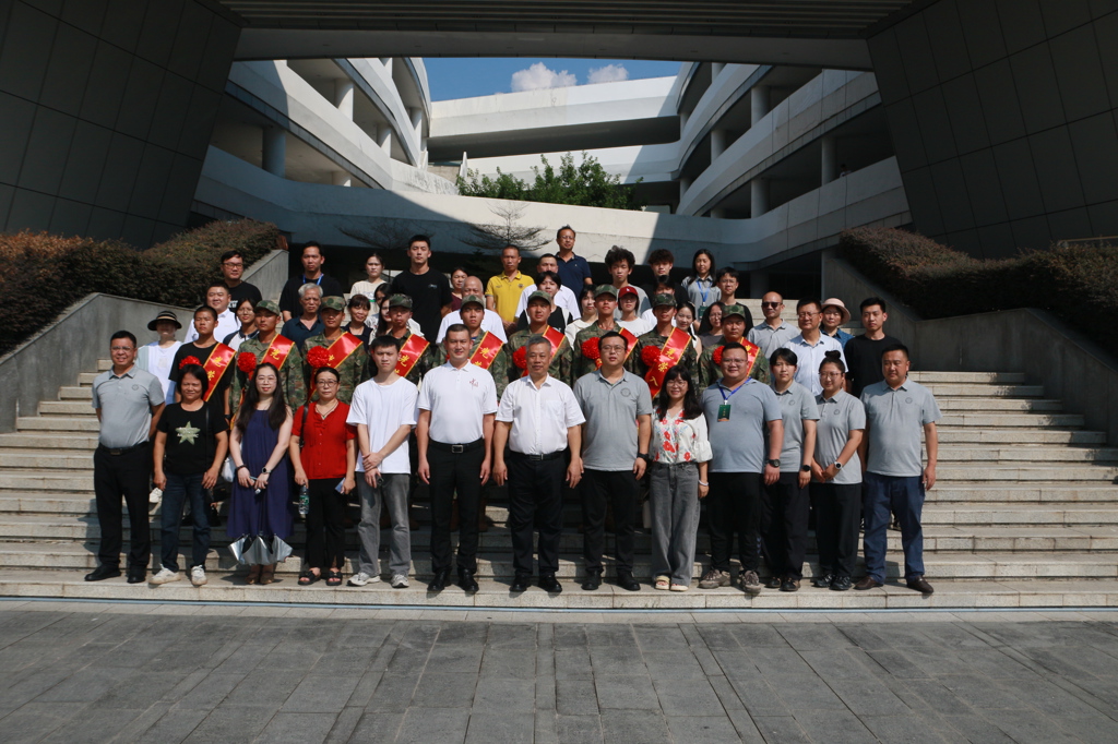 欢送大会后,学校领导、学院领导、老师和家长们与即将入伍的新兵合影留念。