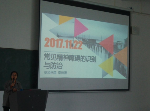 2017年11月22日,下午14:30-16:00在3501课室,由二级辅导站站长李依潇老师为我校心理健康协会以及17级班级心理委员,开展第四次心理培训课,本次培训的主题是“常见精神障碍的识别与防治”。具体内容如下: