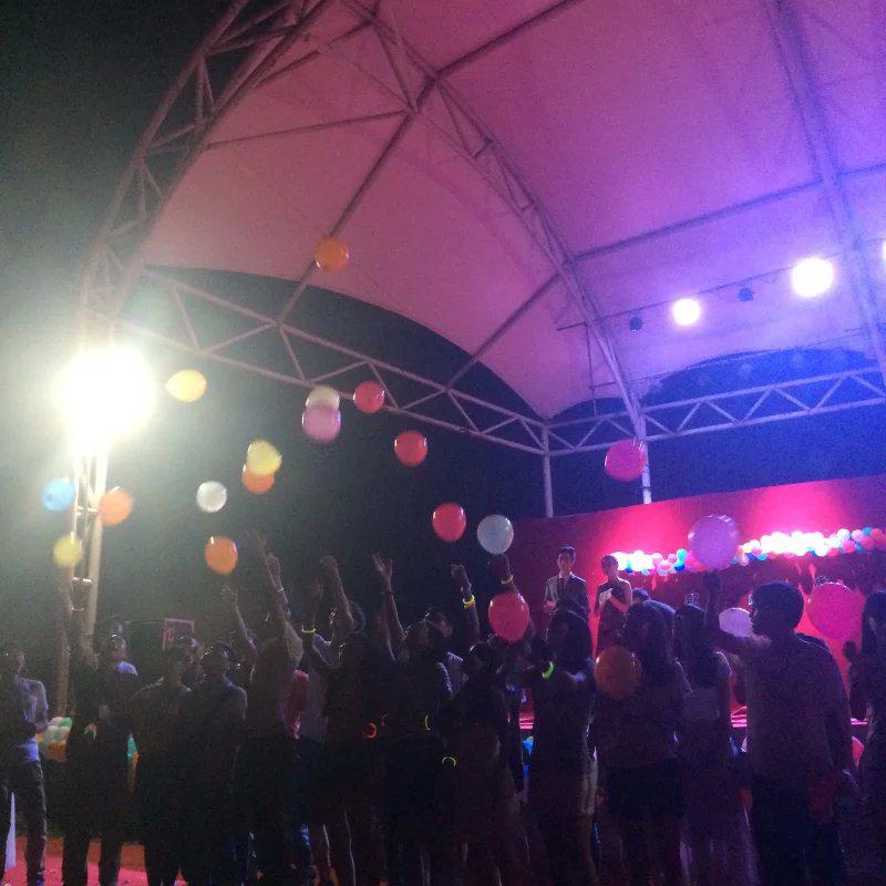 为我们晚会放飞气球,放飞梦想!也庆祝“525”晚会的圆满成功。